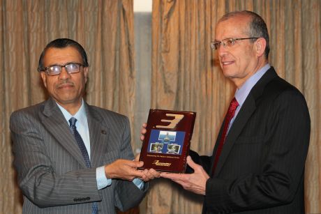 יוסי וייס (מימין) עם רמהקרישנה מחברת BEL
