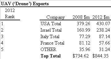 עד סוף 2014 יהיו המכירות של ישראל כפולות מאלה של ארצות הברית. iHS מעריכה שבשנת 2012 הסתכם שוק המל"טים העולמי בכ-840 מיליון דולר